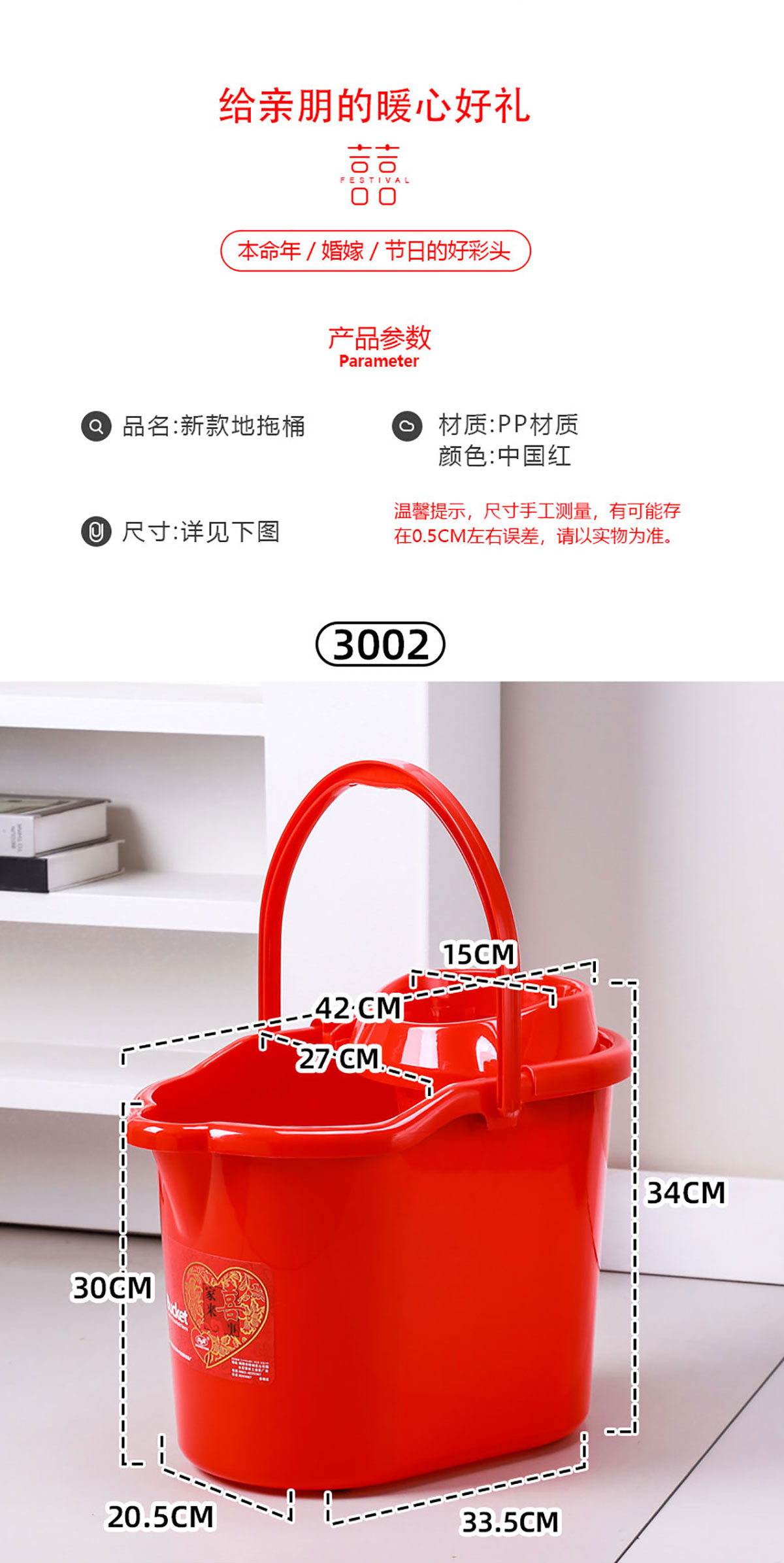 新派地拖桶大號/小號(大紅清裝)