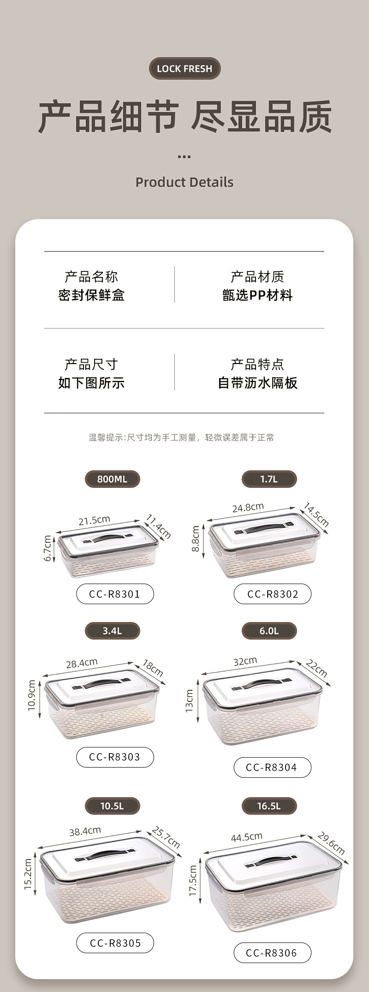 Size: CC-R8301:215*114*67mm/800ml