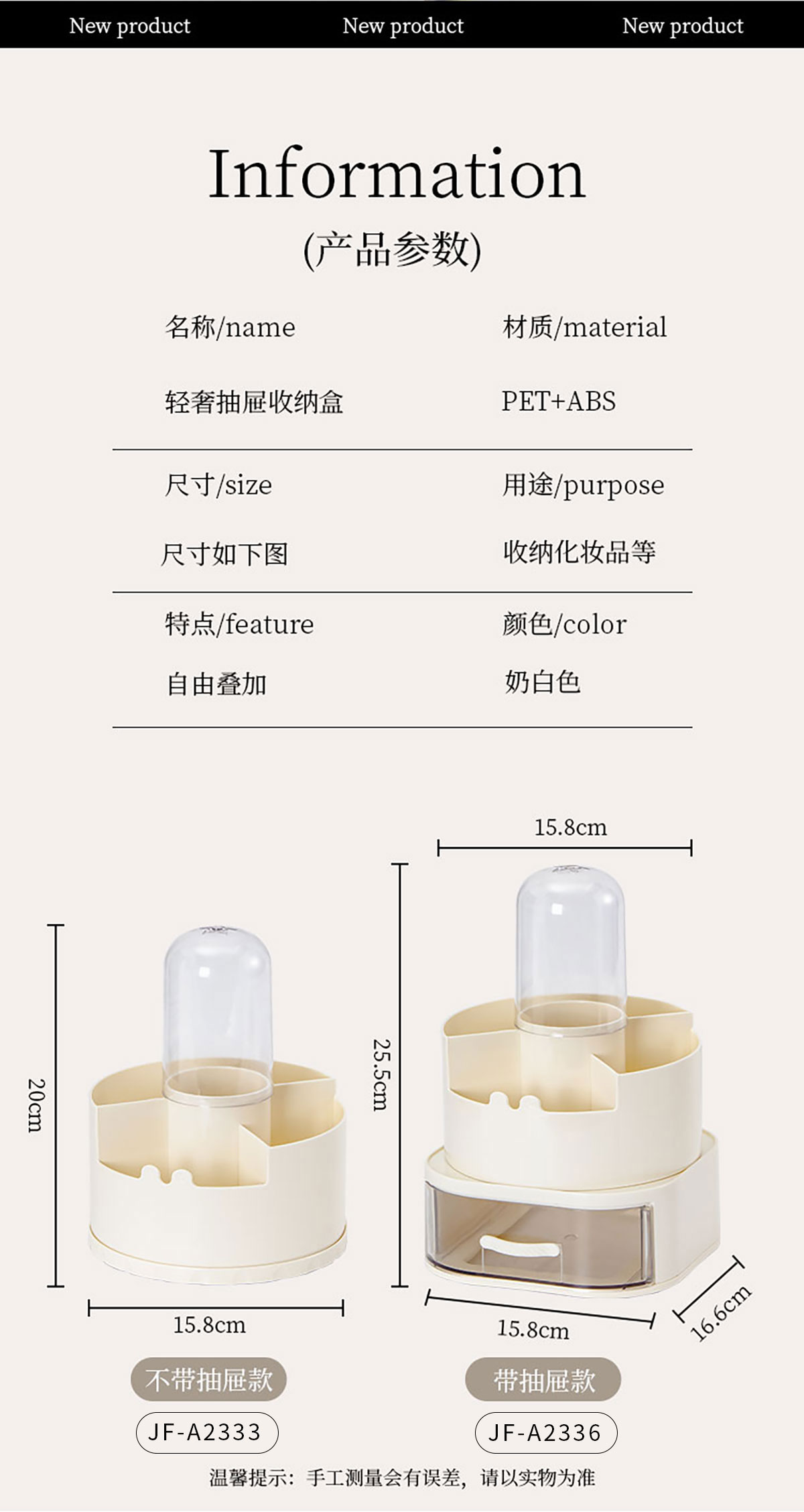 Size: JF-A2333:158*200mm JF-A2336:158*166*255mm