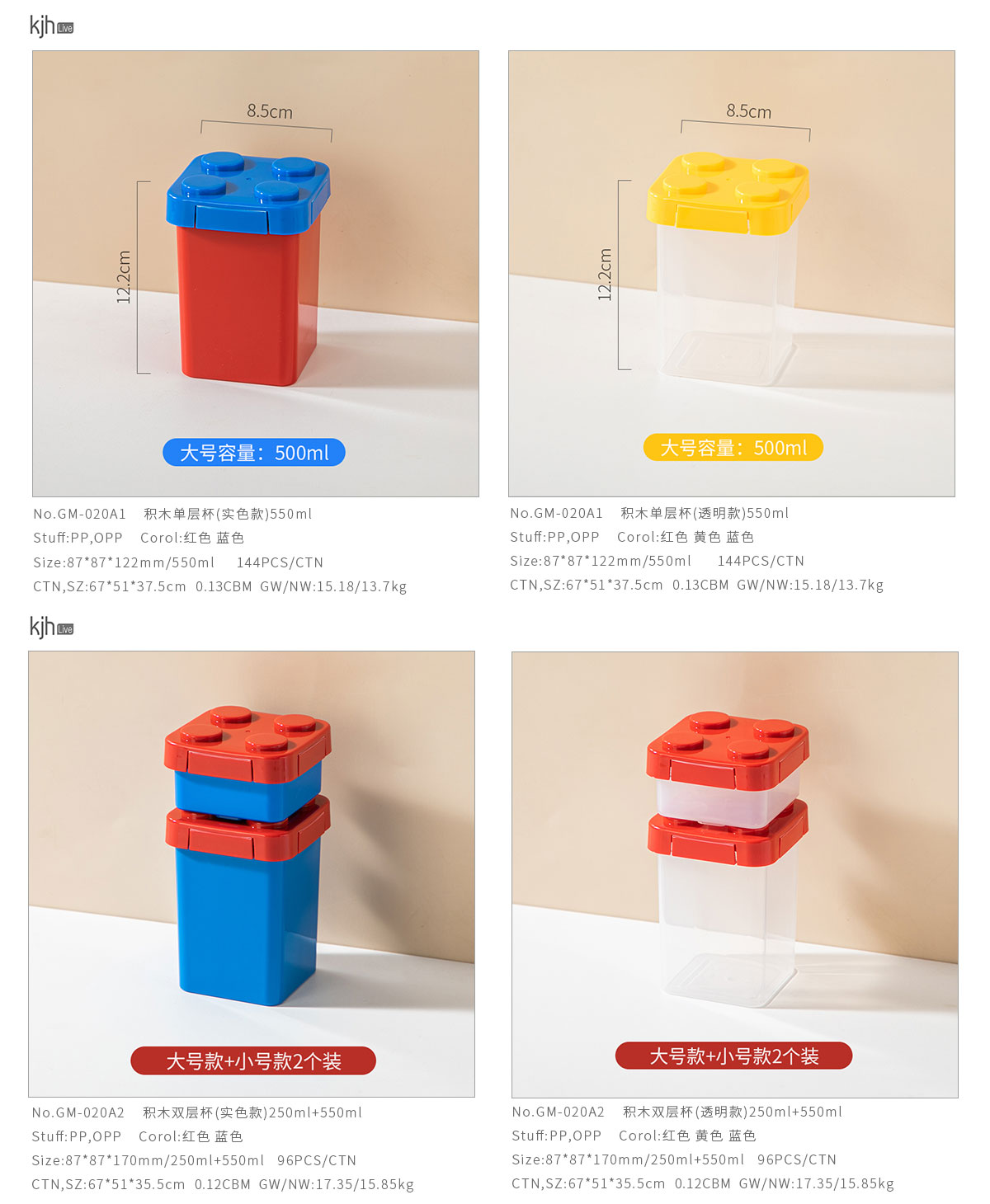 積木單層500ml/雙層250ml+500ml杯(實(shí)色款)